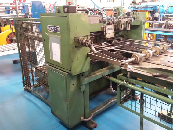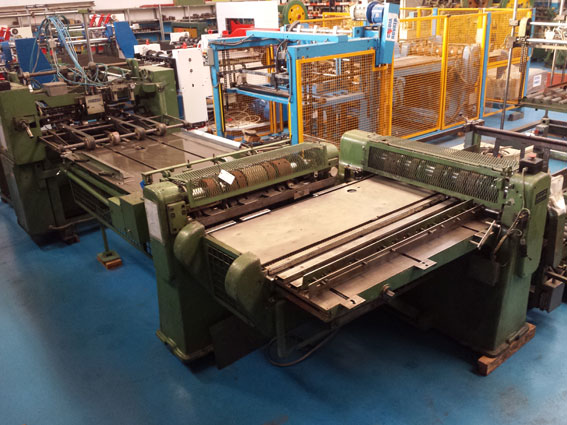 Max sheet width 950mm 1st operation 3 pairs wida blades 2nd operation 6 pairs wida blades Axis diameter 76mm Speed 50 sheets/min maximum depending the can size With automatic OCSAM sheet feeder With strip stacker