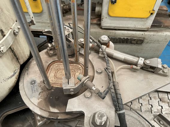 Rango de diametros 60-160mm Rango de alturas 25-175 Diagonal máxima de envases de 160 mm Herramienta RR 118x96mm Velocidad hasta 25 latas/min Con alimentador de tapas y cinta de entrada de botes